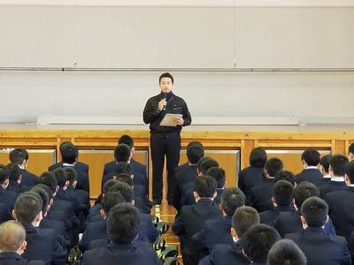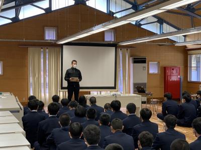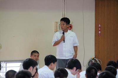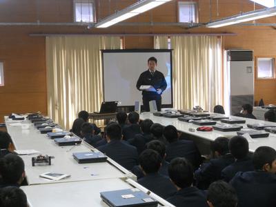 5月1日のゴールデンウィークを利用して、本校機械科卒業生が来校してくれました。機械科在校生に仕事の内容や研修の様子等、わかりやすく話をしてくれました。また進路達成に向けて、「人間性」、「コミュニケーション力」、「資格取得」、「落ち着いた学校生活」などが大切だということを、経験談を交えながら話をしてくれました。他にも社会人と学生の違いについての話など、在校生たちは終始集中して話を聞いていました。卒業生の皆さんのさらなる活躍を心から祈念しています。在校生も先輩達に続こう!!