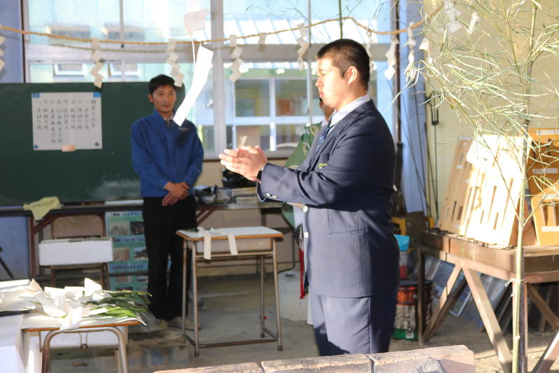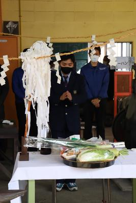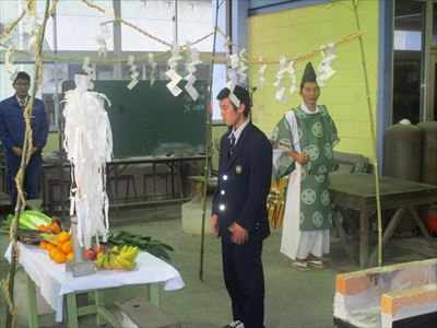 神主、司会を機械科職員が行ない、これからの1年間、怪我がなく無事故で実習等が行なわれるように職員・生徒一同、祈願しました。
