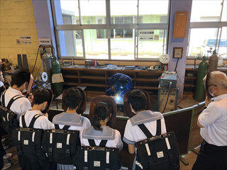 「俺が熱く溶かしてやるぜ・・・」溶接の実践をする中山光太君