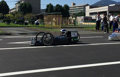 脂によるボディとフレームの一体構造としたマシンを製作して挑みました。軽量化あってか、昨年度より周回