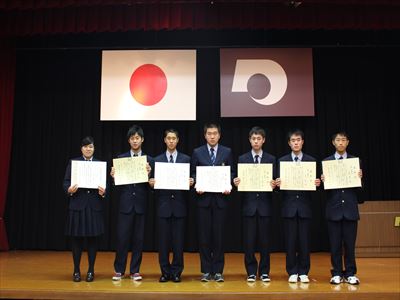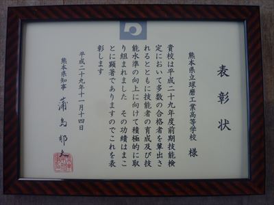 平成28年度前期技能検定優秀合格者受章式が熊本県庁で行われました。技能検定試験で最も優れた成績を収めた「優秀合格者」の表彰で、本校機械科生徒6名が熊本県から表彰を受けました。