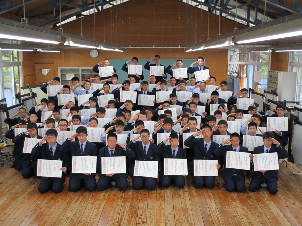 平成28年度後期技能検定試験において、機械科新3年生75名が合格し「技能士」の称号を得ました。作業職種は「機械検査」です。昨年度、冬休み返上で課外を頑張った成果だと思います。現在1年生が「機械保全」、3年生が「金属熱処理」の前期試験に向けて頑張っています。全員合格目指して頑張って下さい。