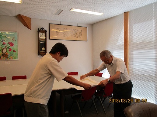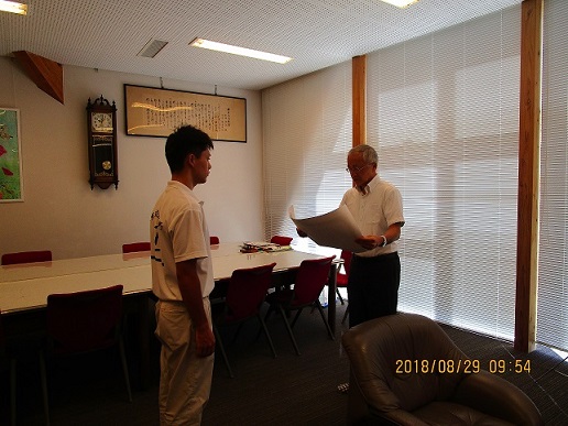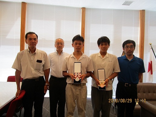 8月29日(水) 熊本県職業能力開発協会の方が来校され、8月2日(木)に石川県金沢市で行われた若年者ものづくり競技大会建築大工部門で銀賞の専攻科1年川口諒祐君、敢闘賞の建築科3年内田祐汰君の授賞式が校長室で行われました。