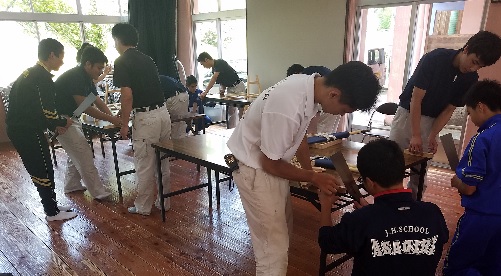 8月27日(月)13:30~ 建築科の中学生対象ものづくり体験教室を実施しました。人吉球磨地区や県内の中学校から7名の中学生が参加してくれました。