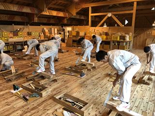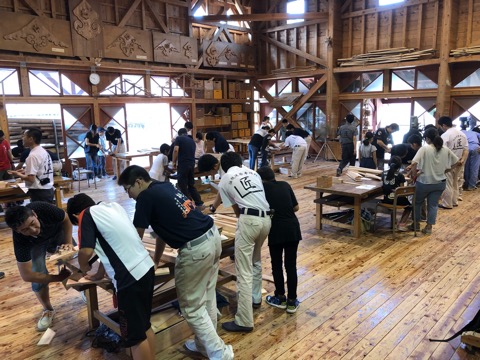 かんながけ体験もさせていただき、木材の香りや宮大工さんのかんなの切れ味にみんな感動していました。その後、意見交換会(質疑応答)では、工事や宮大工の方々への質問などをさせていただきました。とても気さくに体験談や若いうちにやっておいたほうがいいことなどを教えていただきました。