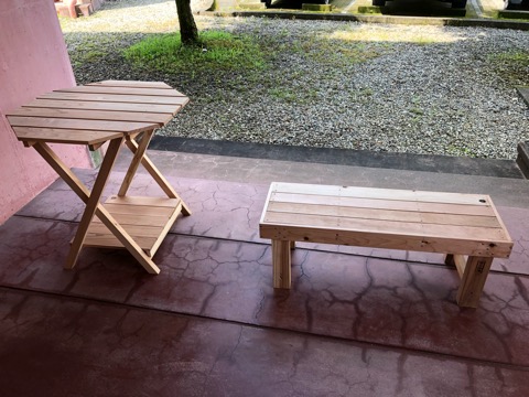 にしきひみつ基地ミュージアムへ寄贈するベンチ2種類、6台の製作。及び、背もたれ付ベンチの作製。