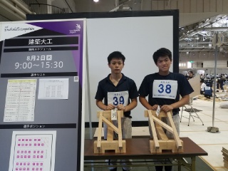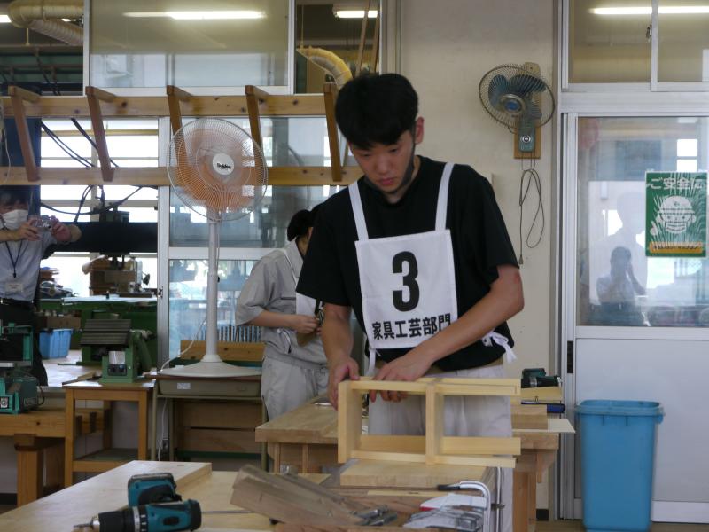 木材加工部門に建築科3年 村上君(菊地北)が出場し、昨年に引き続き金賞‼