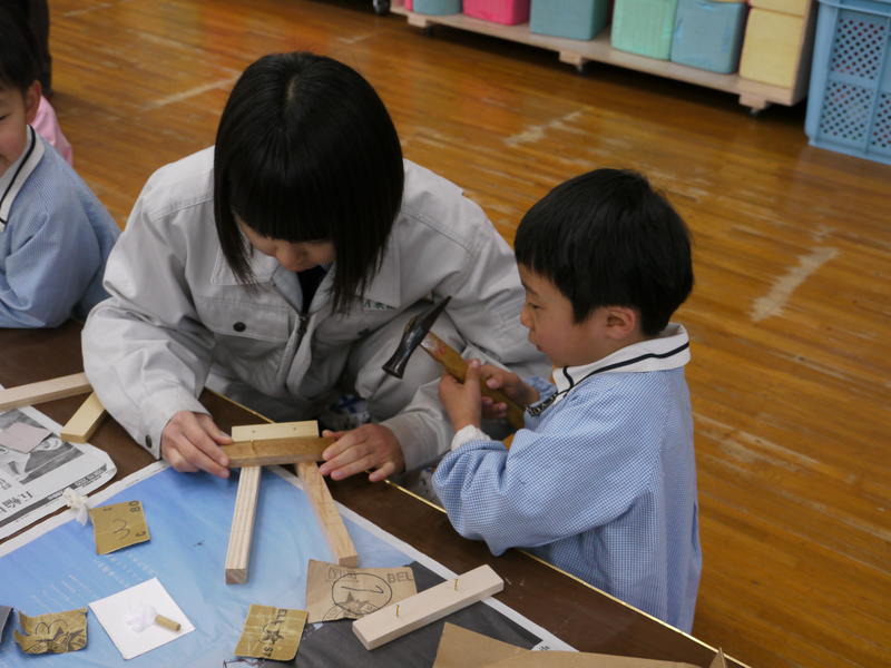 建築科3年生課題研究(木育班)と青井幼稚園の園児さんとの交流会を実施させていただきました。