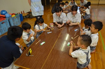 今回も青井幼稚園の年長さんと交流させていただきました。第2回目ということもあり、打ち解けるのがはやく活動もどんどん進みました。