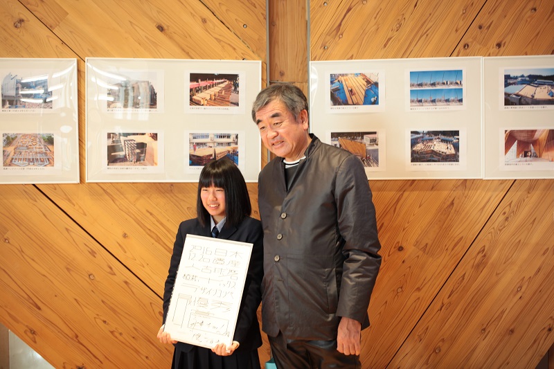 昨年度本校でデザインコンペを行い、建築家の隈研吾氏に最優秀作品を選んでいただき、そのデザインをもとに、