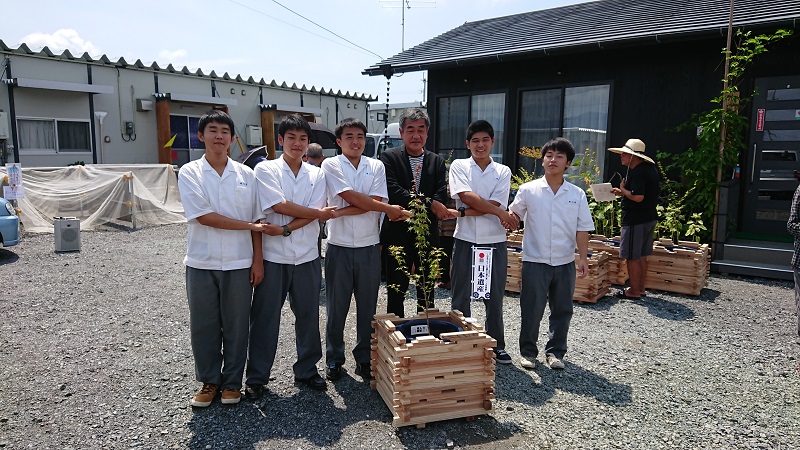 8月27日、日曜日に3年生の課題研究で制作した植栽ボックスを益城テクノ団地仮設住宅に贈呈しました。
