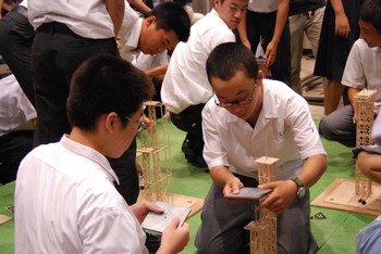 その作り上げたタワーにおもりを乗せていき、また振動を加えることで、その耐震性を競うものです。