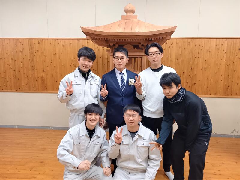 本日(1/19)、朝から建築科三年生6名が課題研究で一年間取り組み製作した八代市泉町六地蔵祠の設置作業を行いました。
