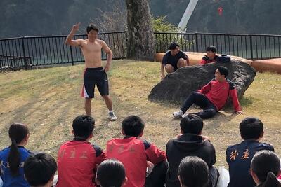 毎年恒例2年生カナディアンによる去年の「カヌー拳法」に続く「ごろう体操拳法」