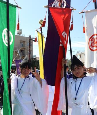 10月9日(木)、伝統ある「 おくんち祭り 」 の神幸行列に参加させていたできました 。