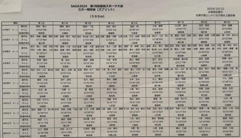 10 月 3 日(金)~ 6 日(月)に滋賀県 東近江市 伊庭内湖特設カヌー競技場にて第 79 回国民スポーツ大会カヌースプリント競技会が開催されました。