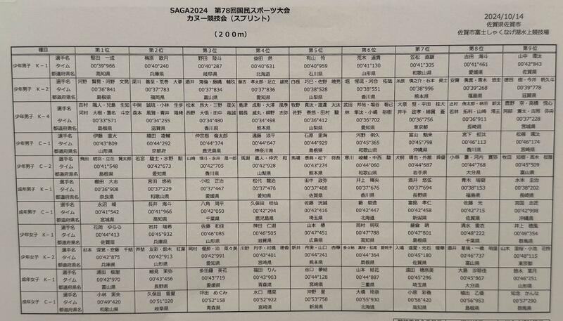 【カヌー部】第 79 回国民スポーツ大会カヌースプリント競技会 結果報告