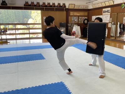 みなみ主将オリジナルの蹴りの練習方法で・・・ 蹴りの軌道が美しくなりましたナイスゥ!