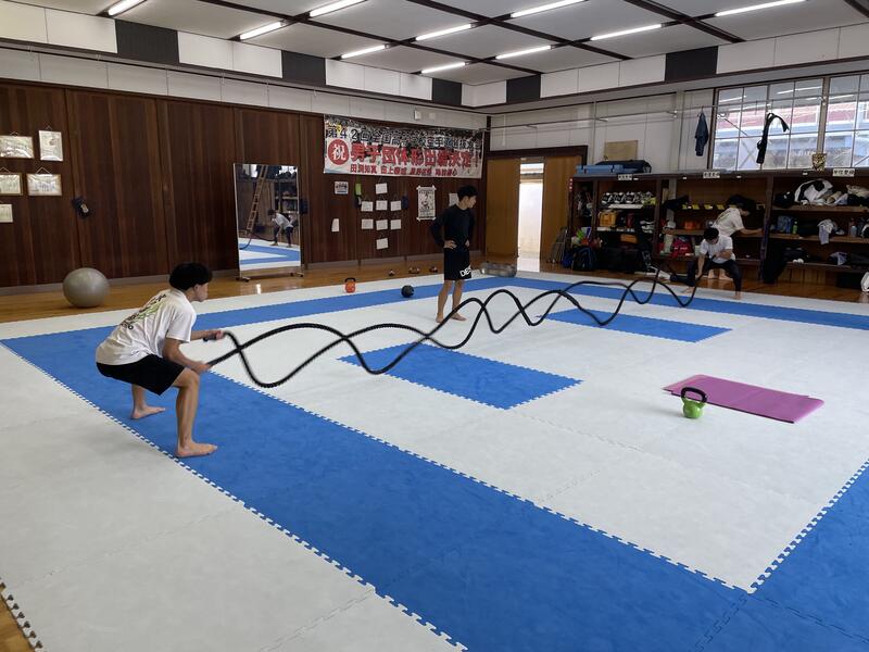体育館では空手部などが活動していました。