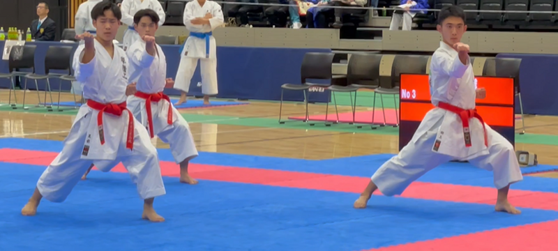 団体組手高校男子 Aチーム(2E上田、2MB桑島、2C若松)2位