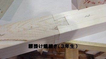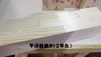 1年生は平ほぞ、2年生は平印籠継ぎ、3年生は腰掛け蟻継ぎです。