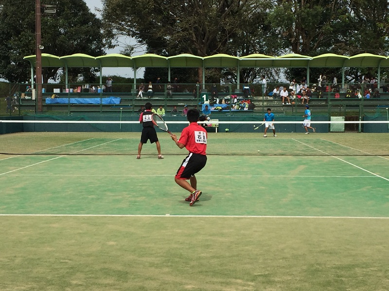 久しぶりの晴天で気温が上昇し、試合中に足がつる選手もいましたが、なんとか本校の山中・川原村ペアが優勝。