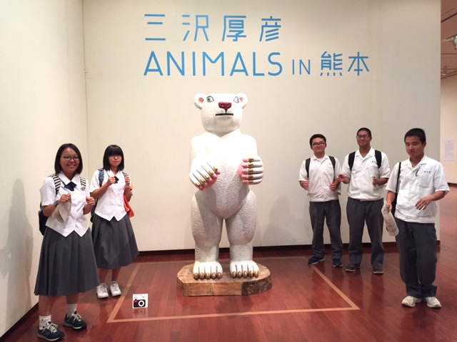 アートスペース大宝堂では熊本の彫刻家集団による「グループ88展」を鑑賞しました。三沢厚彦さんと同じ彫刻という分野ですが、こちらは主に人物を写実的に表現した展覧会です。撮影も可能であったので、好きな作品をいろんな角度から撮影しました。生徒が熱心に写真を撮る姿も美しく感じました。