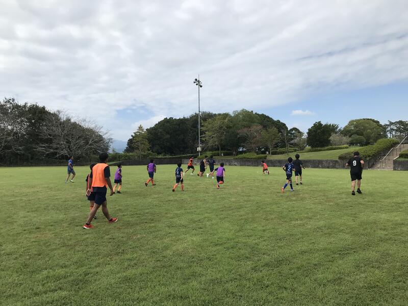 久しぶりに人吉ジュニアラグビースクールの皆さんと一緒にトレーニングを行い、汗を流しました。これは、ラグビーの動きを柔道に生かす、ジュニアの皆さんとの交流を通してコミュニケーション力の向上を図る、ゲームの中での瞬時の判断や次の展開を読む力を付ける、トレーニングの準備や片付けを通して段取りの大切さを知ることなどを目的として参加させてもらっています。
