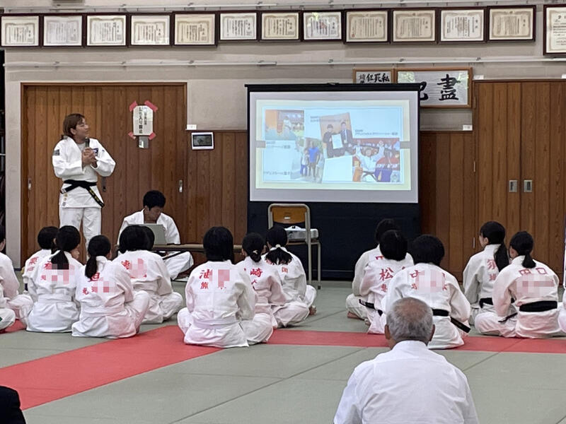 本校女子柔道部員の須恵さんが、全日本柔道女子強化指定選手である鍋倉那美選手の講習会に参加しました。鍋倉選手がこれまでの経験や技の講習等をして頂き、有意義な時間となりました。