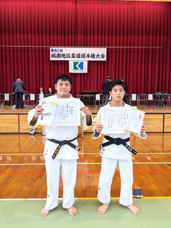 人吉スポーツパレスで第63回城南地区柔道選手権大会が開催され、高校男子軽量級で吉富選手、高校男子重量級で大河内選手がそれぞれ3位になりました。