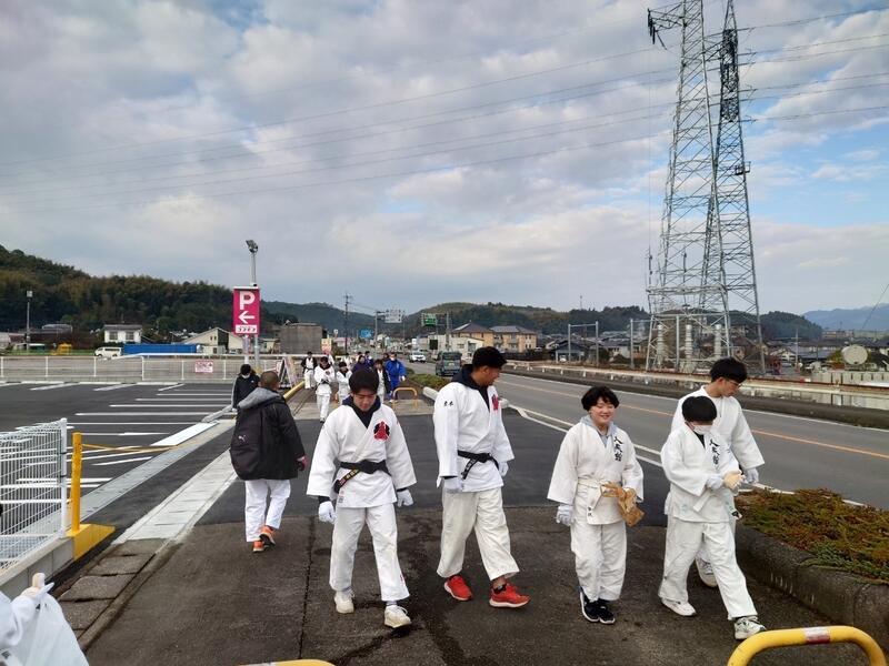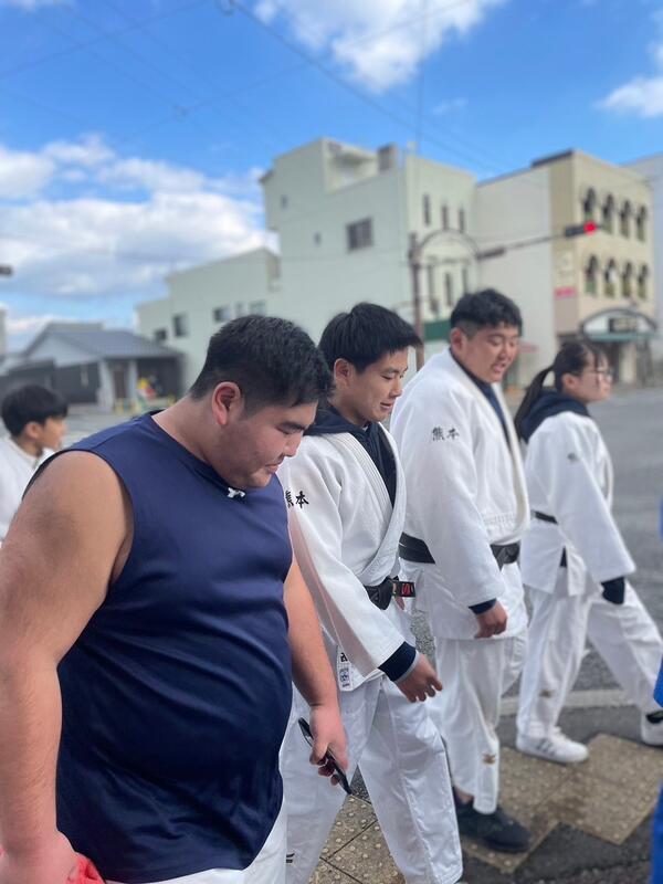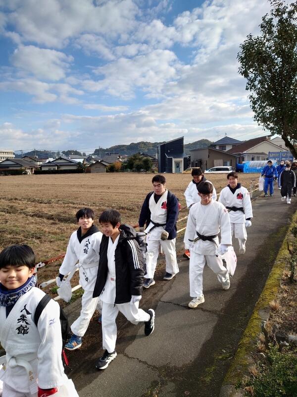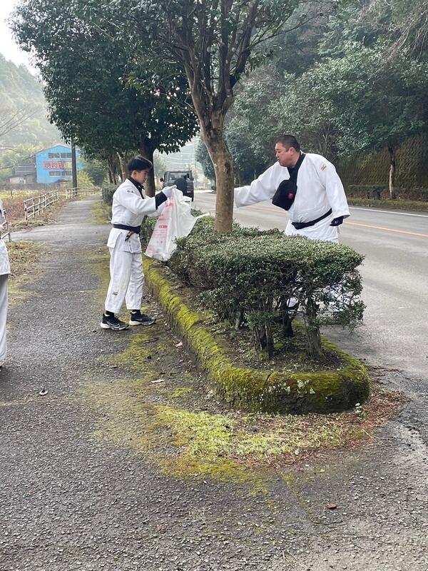 人吉柔道協会に所属する少年、中学生、高校生、一般が集まり、日頃からお世話になっている地域を綺麗にするため、人吉城跡グラウンドから青井阿蘇神社までのロードクリーンボランティアを行いました。その後、全員でお詣りし、人吉柔道協会人柔館の保護者の皆様が準備して下さった豚汁、カレー、ぜんざいなどを頂きました。