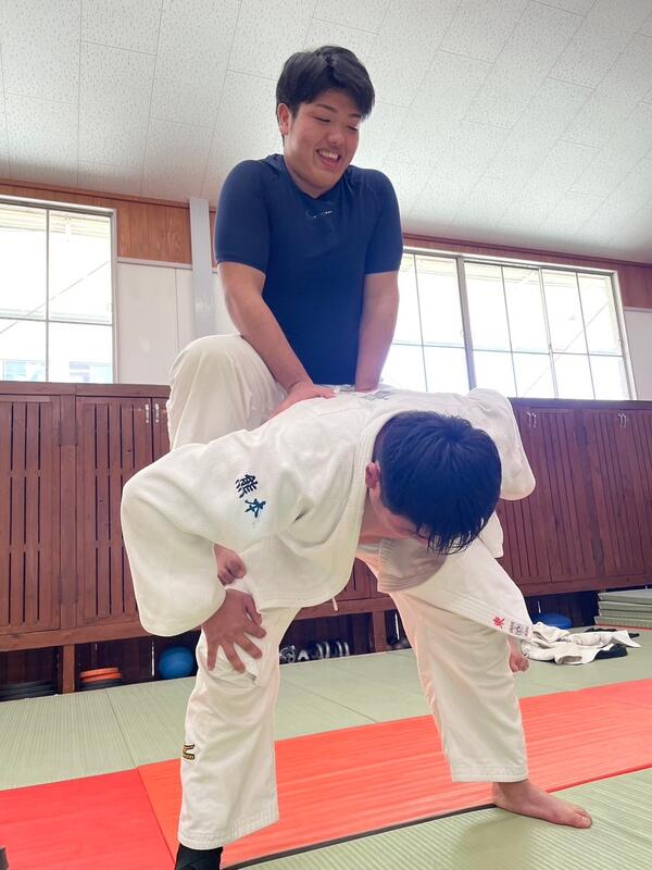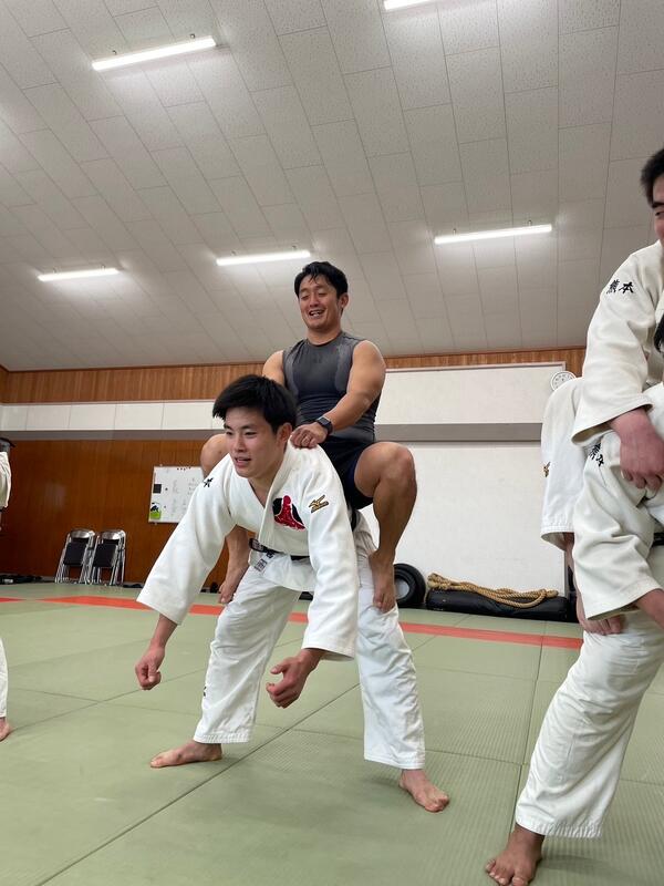 また、本校柔道部OBの岩川先輩も5限目の講義後に練習に来られ、勉強も柔道も共に頑張っていました‼️