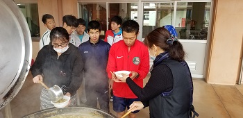 今日は一段と寒さが厳しかったので温かい豚汁は、生徒にとって何よりのご褒美です
