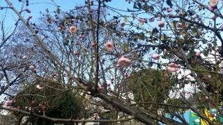 「梅に鶯」連想で、その梅の木にウグイスが来て「ホ~ホケキョ♪」と鳴いている写真を撮ろうと昨日10分ほど待ってみましたが、とうとう来ませんでした。写真部の生徒たちが校内で「一瞬」を狙っている姿を時々目にし、その粘り強さに頭が下がります。私は早々引きあげました。