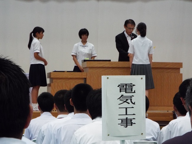 6月18日(日)に玉名工業高校で第14回熊本県ものづくりコンテストが行われ、電気科3年園田万帆さん(人吉一中出身)が昨年に続きし優勝することができ、見事2連覇を達成しました。熊本県の電気工事部門では、女子の2連覇は初の快挙です。園田さんは、7月8日(土)~9日(日)に鹿児島工業高校で行われる九州大会へ出場します。昨年は3位でしたので、それ以上の成績を残せるよう頑張ってください。