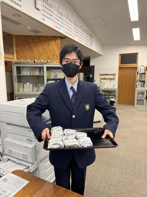 本日、クッキング同好会がフェスタのために試作で作ったブラウニーを、職員室に持ってきてくれました。