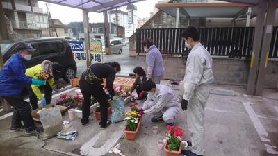 人吉ロータリークラブ災害復興プロジェクト(花の苗植え・プランターの設置)【建築科】