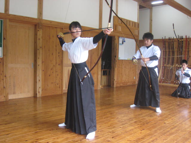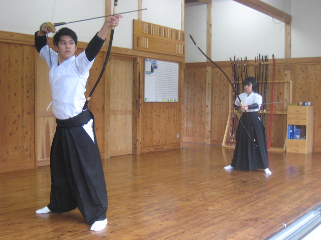 初日の午前中は芦北高校の弓道部員さんと一緒に練習しました。