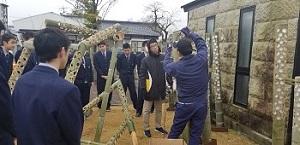 食の名人のみなさんとお話もはずみます。ちょうどこの日、3年建築科の製作した祠の記事が