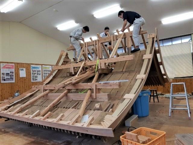 屋根を剥がしていたら、当時の制作者の名前が書かれていました。「平成18年度課題研究 砂浜班」とか読み取れます。