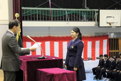 選手代表として、ソフトテニス部主将の豊永君が、