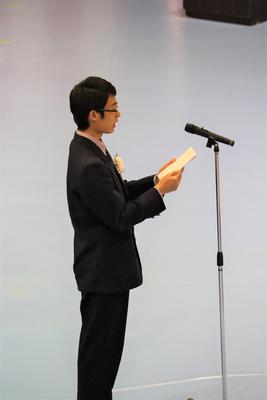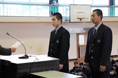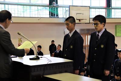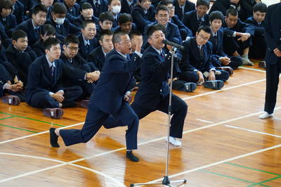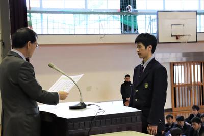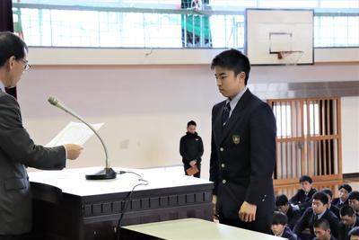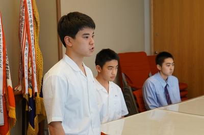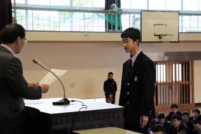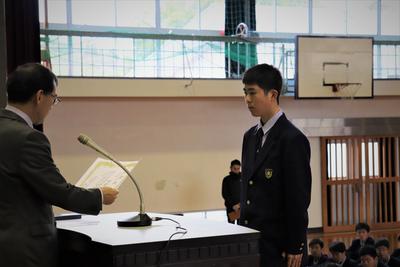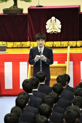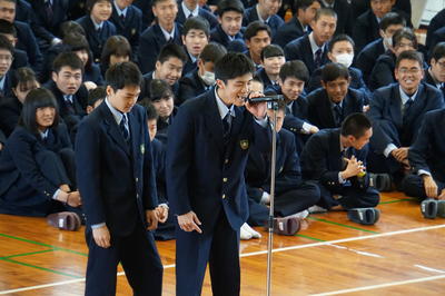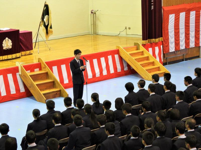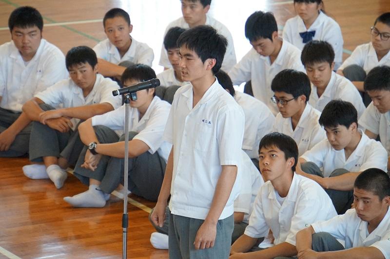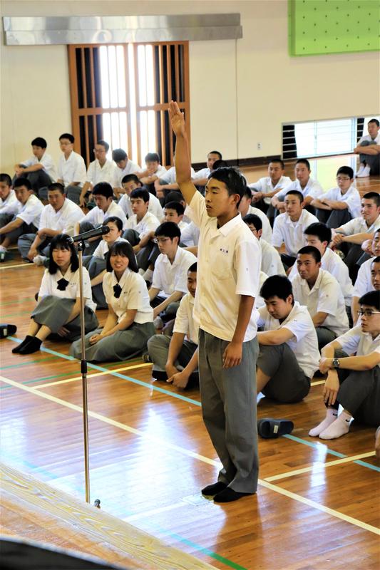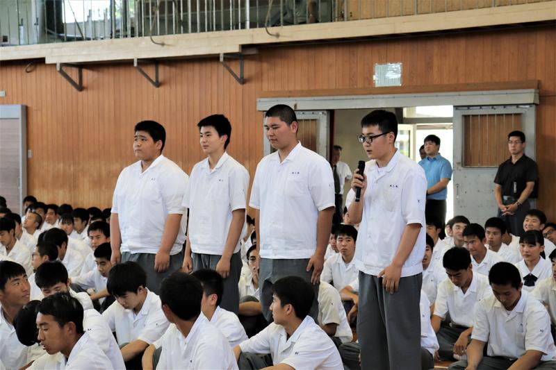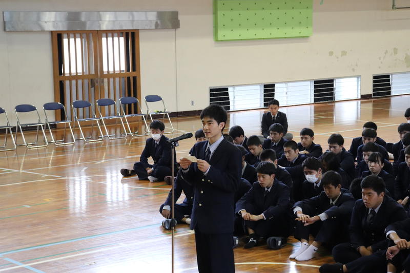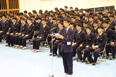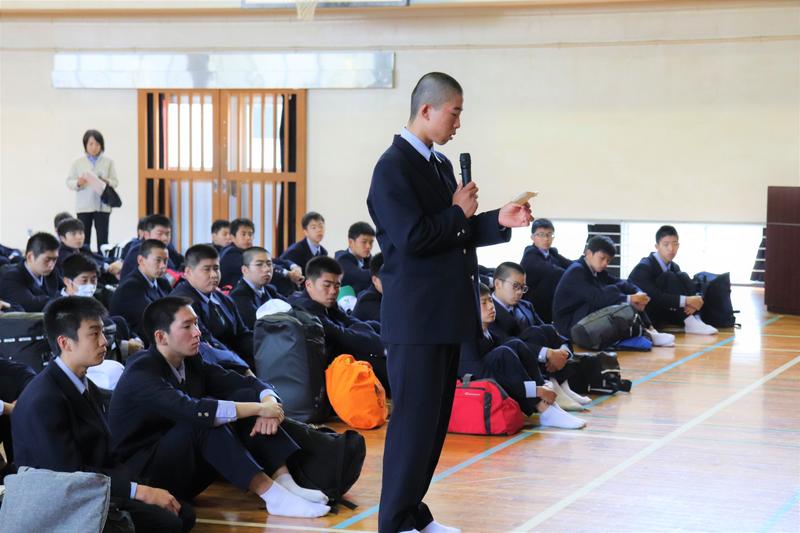 生徒会長の椎屋君より選手の皆さんへ激励の言葉。