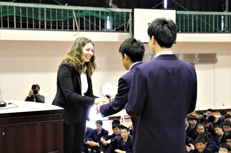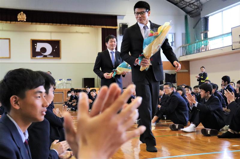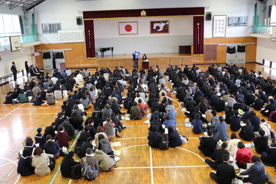 本校体育館でも拍手が沸き起こりました