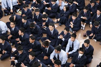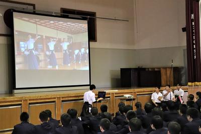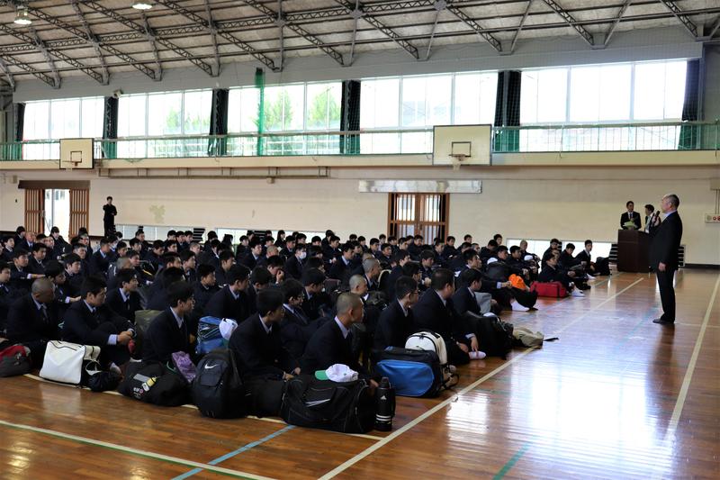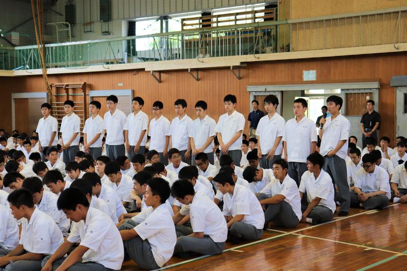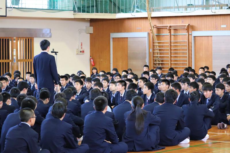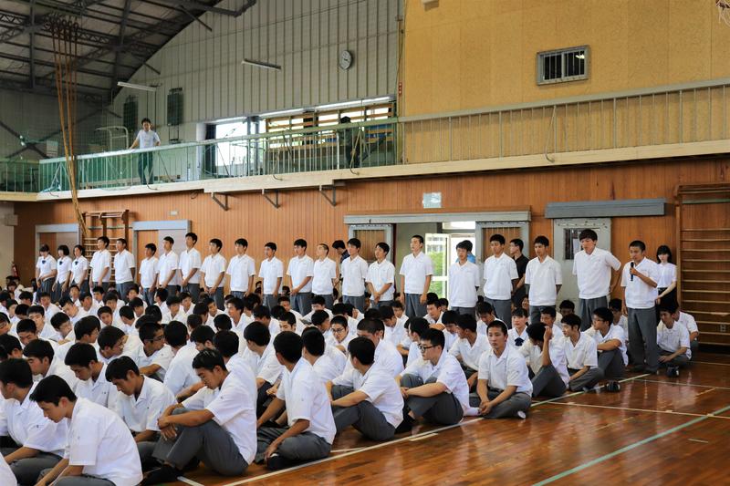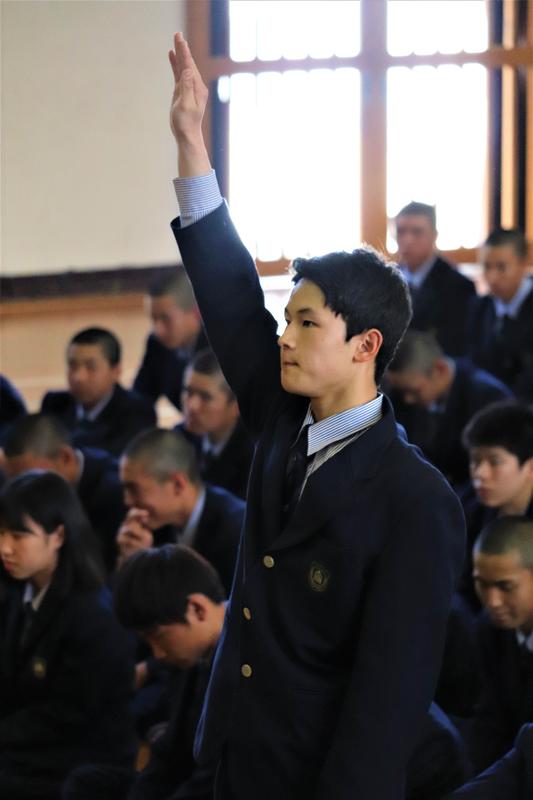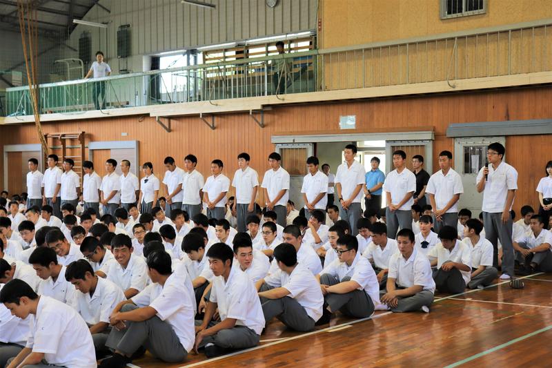 しっかりと聞く球磨工生。