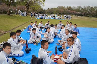 行進が始まる30分程前から降り出し、行進中もずっと降っていた雨も開会式が終わる頃はすっかりやんでいました。今年度の学校のテーマは「飛躍 ~No rain, no rainbow~」です。虹が出てないか探しましたが、見つけることはできませんでした。でも行進した一人一人の心の中に虹があったことでしょう。最後にみんなで記念撮影をしました。お疲れ様でした。