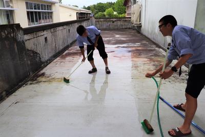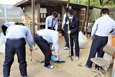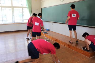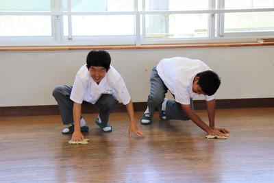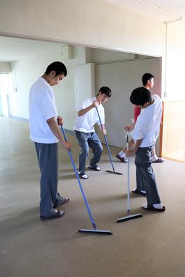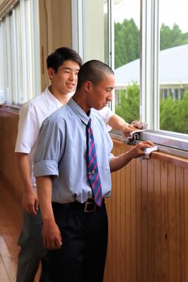 毎日雑巾で手際よく掃除している1年建設工学科の皆さんです。