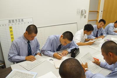 体育の後、汗をかきながら頑張る2年建築科の皆さんです。
