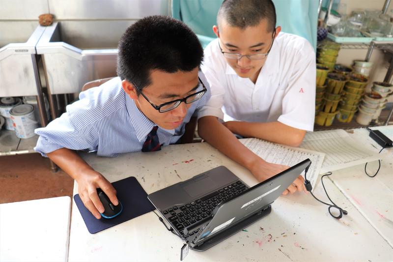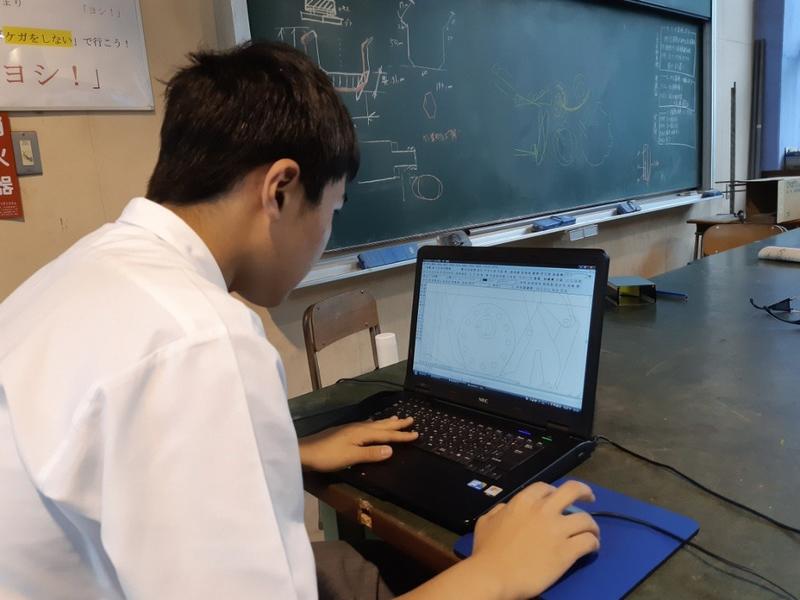 放課後、溶接部ロボット班の生徒がCADを使って黙々とロボットの図面を引いていました。図面を引いているのは最も工業高校らしい光景だと思いながらパシャリ。