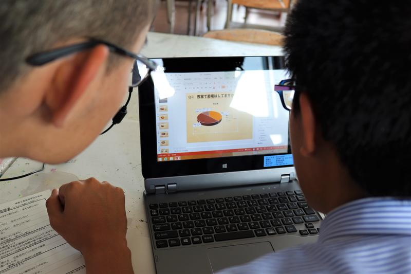 「球磨工業生の実態」のプレゼン準備をしています。
