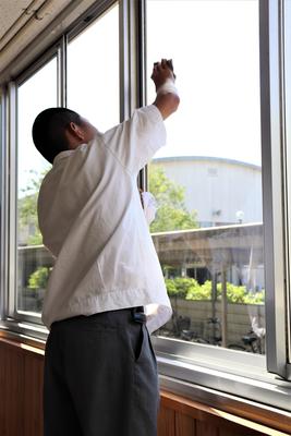 窓ふきは2枚のぞうきんを使い分けて頑張っていましたよ